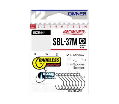 Owner 51724 SBL-37M – серия специальных крючков для спиннинговой ловли, изготовленных из высококачественной углеродистой стали. Крючки Owner SBL-37M рекомендуется использовать при оснащении различных типов воблеров, в том числе минноу, когда использование тройников не желательно или создает проблемы. Для крючков Owner 51724 характерно укороченное цевье, широкий хищный загиб, отогнутое внутрь чуть удлиненное жало без бородки и защитное покрытие серого цвета. Главное же отличие этой серии от других серий аналогичного назначения состоит в том, что увеличенного размера крепежное колечко развернуто на 90 градусов – для правильного размещения крючка в заводном кольце воблера. Кроме того, благодаря «безбородому» жалу эту серию широко используют спортсмены при оснащении приманок для соревнований.