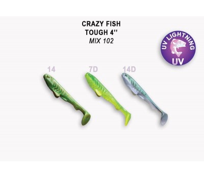 Активный виброхвост с телом рыбки и большой тяжелой пяткой в хвостовой части. Активность приманки происходит за счет длинного, тонкого хвоста, очень чувствительного к малейшему движению удилищем. Данная модель оснащена специальной бороздой под офсетный крючок. Приманка Crazy Fish Tough превосходно работает при любых проводках, даже очень медленной. Мощная пятка производит колебательные движения, привлекая к себе хищника.