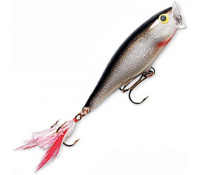 Размер воблера Skitter Pop 07 равен 7 см. Такие габариты могут быть привлекательны не только для щуки с вездесущим окунем, но и голавля с жерехом покрупнее. Конструкторы Rapala сделали тело поппера из классической бальзы, но характерную выемку оснастили пластиковой чашей. На рывках приманка сначала может подныривать немного, а потом "выпрыгивает" из воды, поднимая высокую волну. При этом происходит небольшое смещение по зигзагообразной траектории. Слышится аппетитное бульканье. Погремушки в корпусе нет, потому естественные звуки, которые создает воблер, не отпугивают настороженных, пассивных особей.